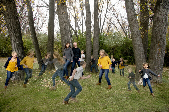 I didn't want the usual formal family photo. I wanted to capture all the giggles all the personality and joy of this precious time. It goes so fast and I wanted to create a piece of art that will be on a wall and will always bring a smile to the faces of this family. Shot in natural light. I told mom and dad to pose and smile at the camera and then I gave the kiddos a perimeter that they could play tag in. I composited several of those images to create this feeling of movement and joy. Families have bad days and good days. I really wanted to capture one of the good times. That what matters most.