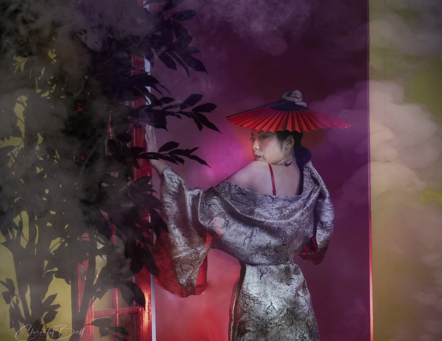 "Condrea" Fun shoot, 2 light setup ( Godox 600's) (Parabolic Camera Right/ Canned- gelled light behind models feet , Vflat behind the model in doorway), Fog machine, Imported Fog Textures, Edits in PS, and a great model! Sony A7III, Sony 70-300mm @75mm. Iso 100 1/125 F5.6 . * I'll pop a drawing in BTS drawing in soon.