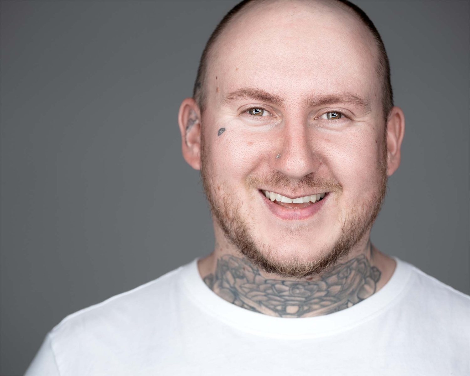 The guy (Matt) in the picture is a good friend of mine. He never smiles in front of the camera. With him being covered in tattoos, people do judge. He's a really nice guy and I was hoping to capture that side of him.